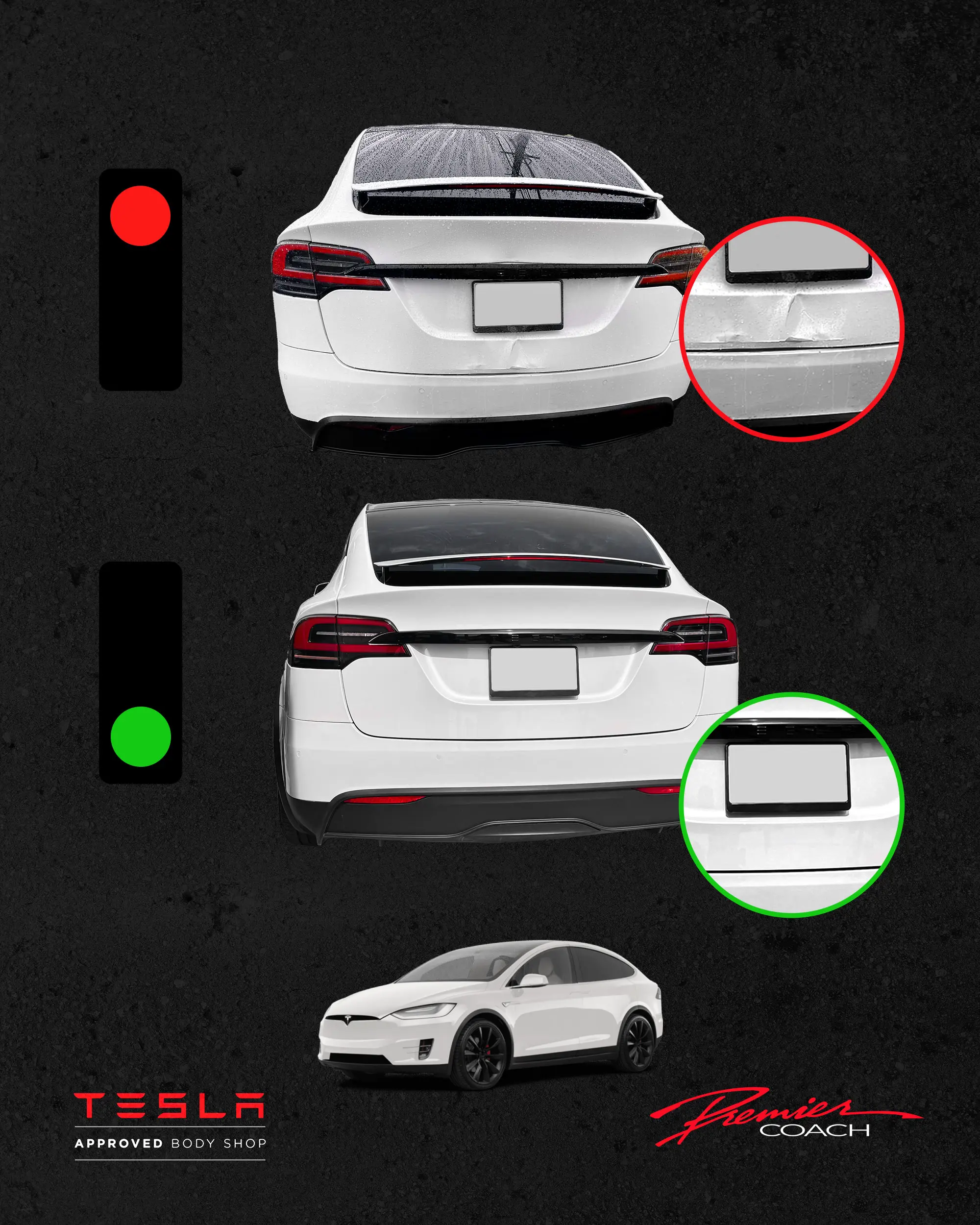 Tesla Model X Rear End Collision Damage Before and After by Premier Coach Auto Collision Tesla Approved Body Shop Auto Collision in Thousand Oaks and Camarillo