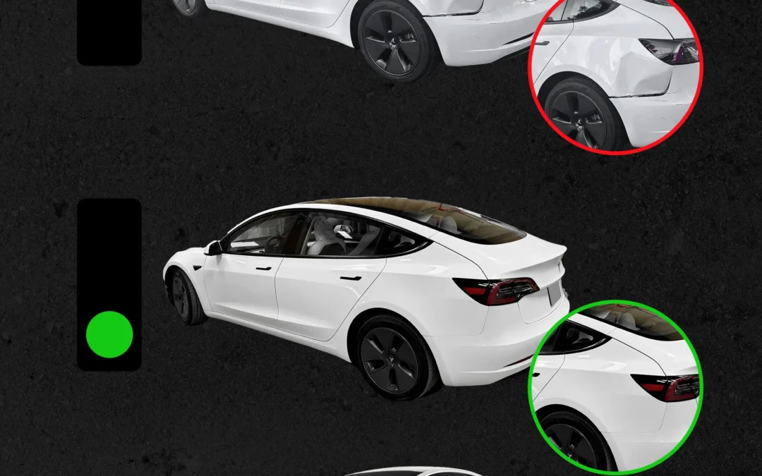 Tesla Model Y Quarter Panel Collision Damage Before and After by Premier Coach Auto Collision Tesla Approved Body Shop Auto Collision in Thousand Oaks and Camarillo